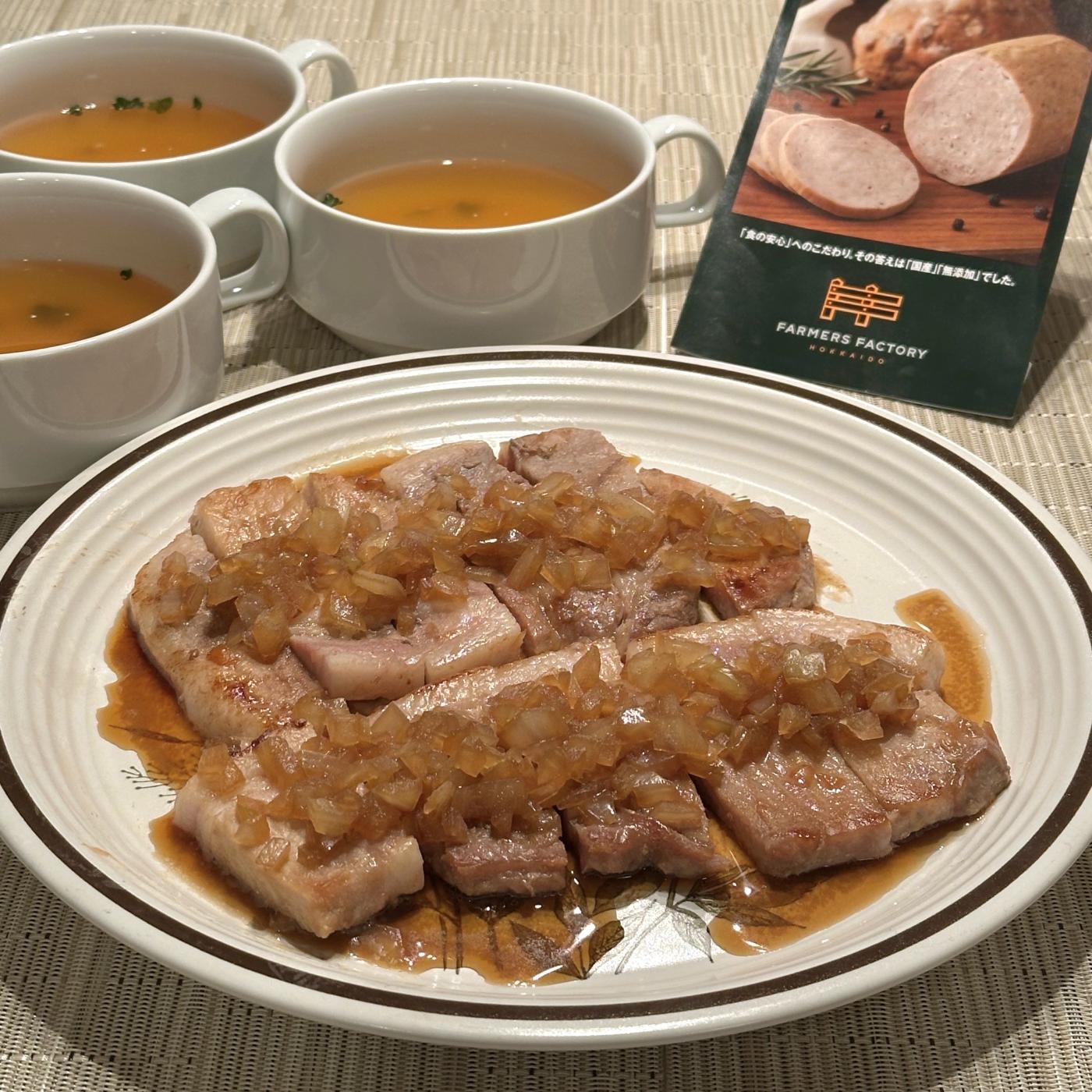 今日の夜ご飯はトンテキ。 ファーマーズファクトリー様の @farmersfactory_official 豚ロース厚切...