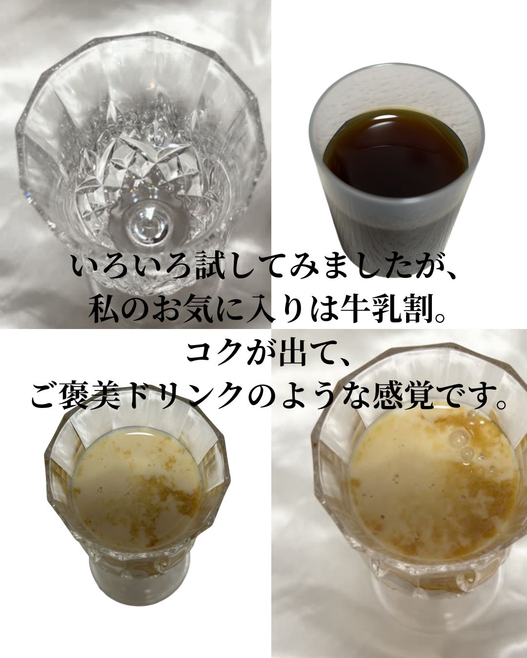 飲み方はいろいろ試してみましたが、私のお気に入りは牛乳割。牛乳と合わせることで角が取れ、まろやかさが増してデザート感覚で楽しめました。夜のリラックスタイムや、小腹が空いたときにも取り入れやすいと感じています。ストレート、水割り、炭酸割りなど、その日の気分でアレンジできる点も続けやすさにつながりそうです。
