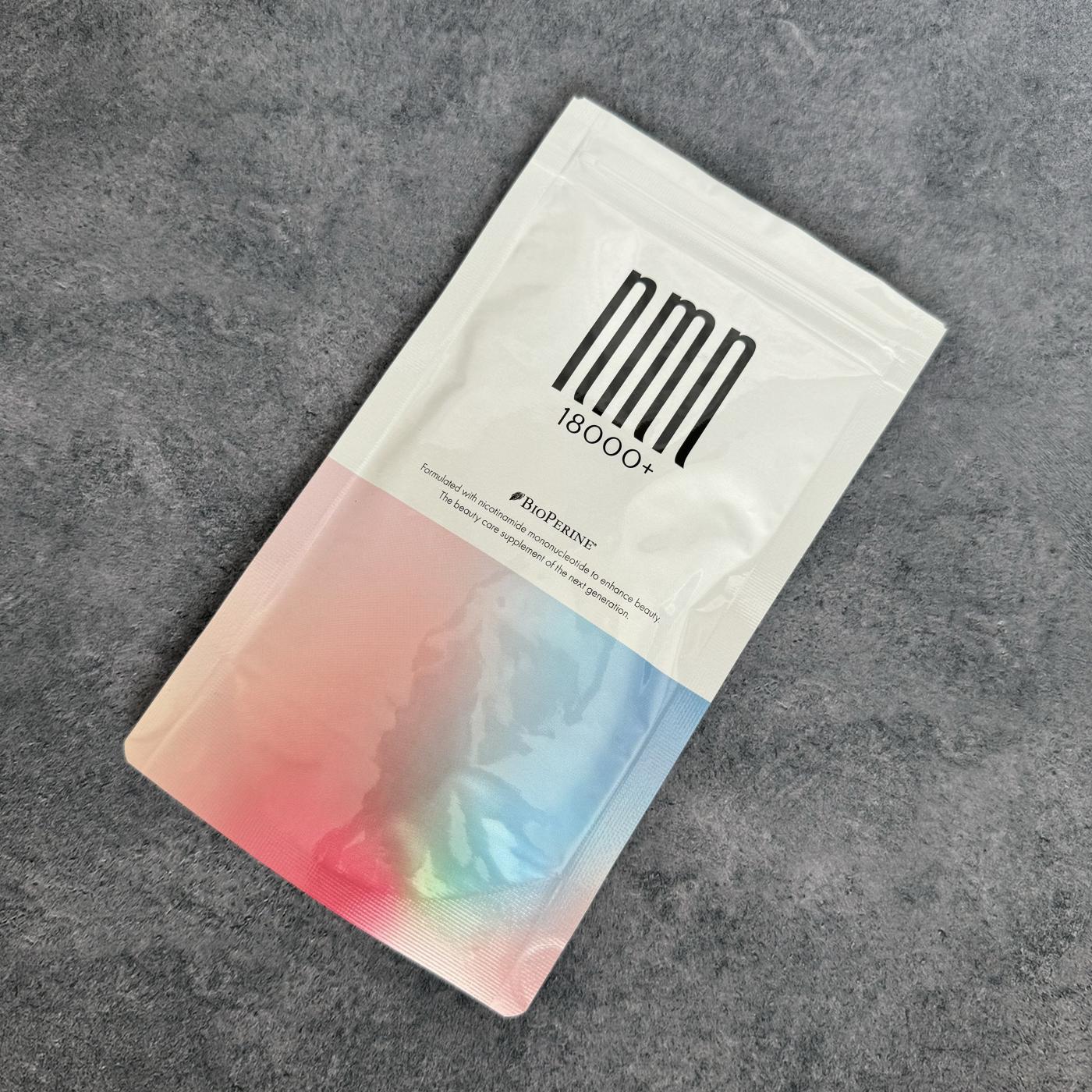 finebase NMN18000+のレビューです。 ジップロック付きの袋に入っているサプリメントです。 NMNと黒胡...