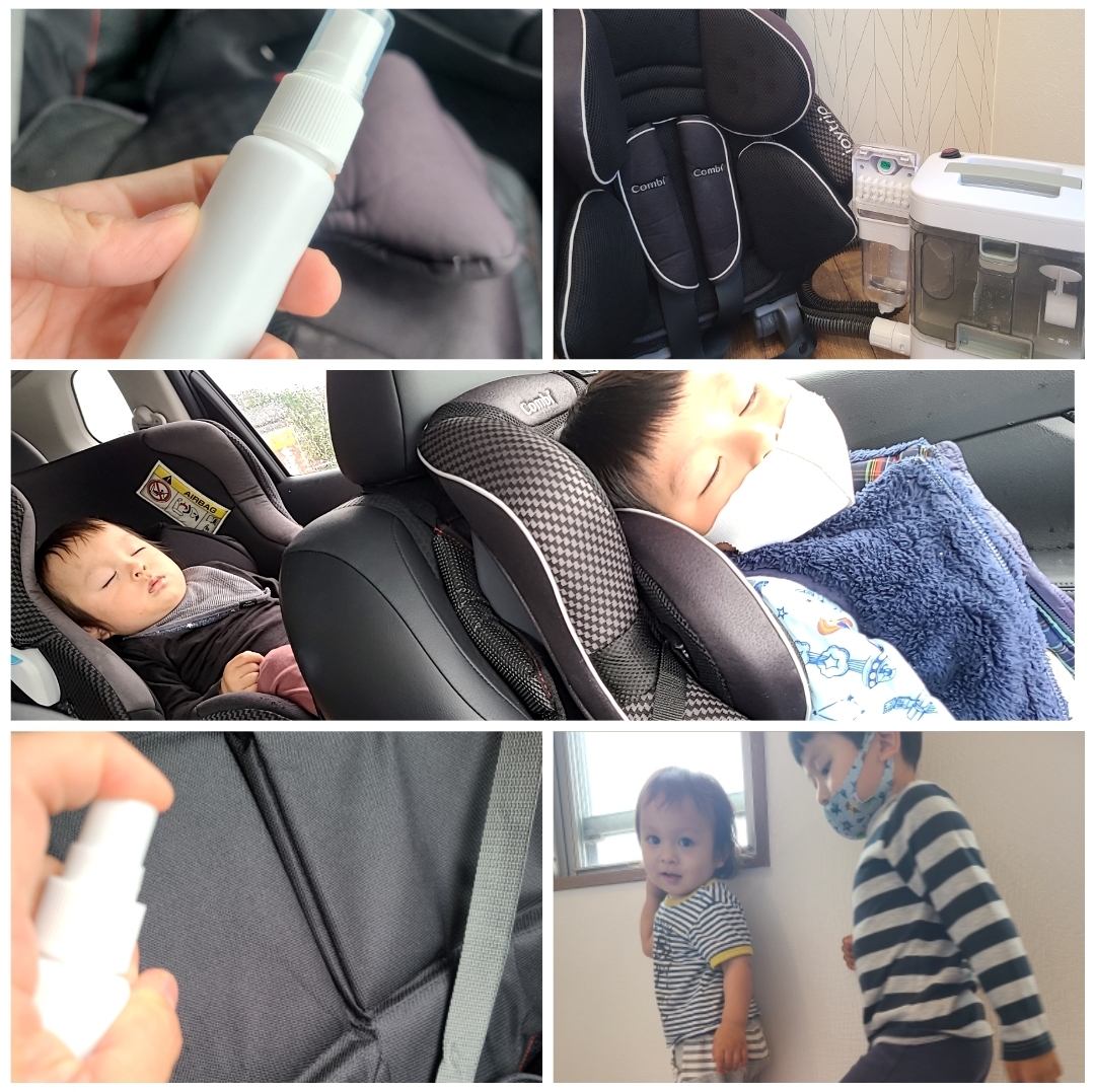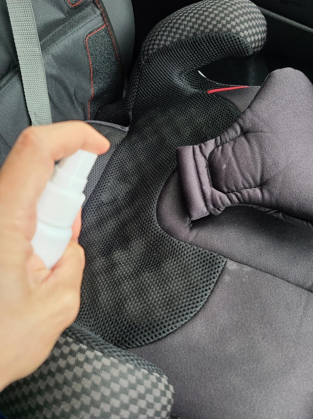 今使っていたものを次男が大きくなったら使おうと考えているので、このエコジアで車のシートと、チャイルドシートにシュッシュッとしてみました!