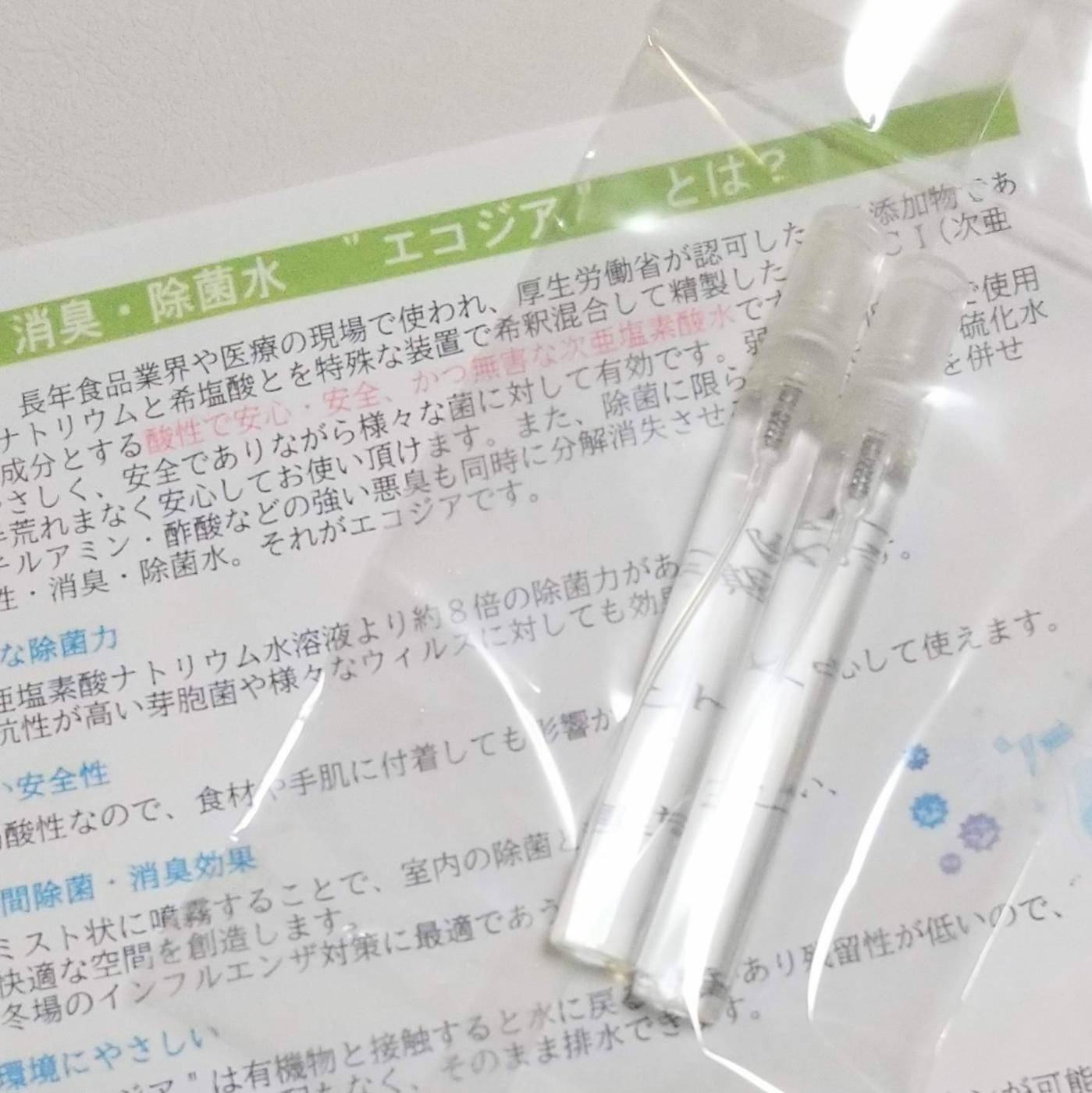 次亜塩素水って独特のにおいがしますが、エコジアはほぼ無臭なので使いやすいです。