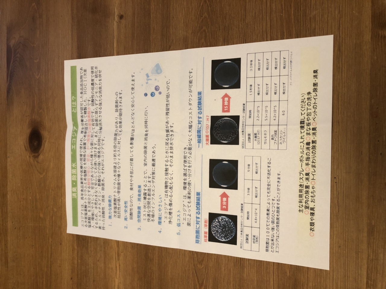 こちらのエコジアは、酸性で、安心・安全、かつ無害な次亜塩素酸水ということです。