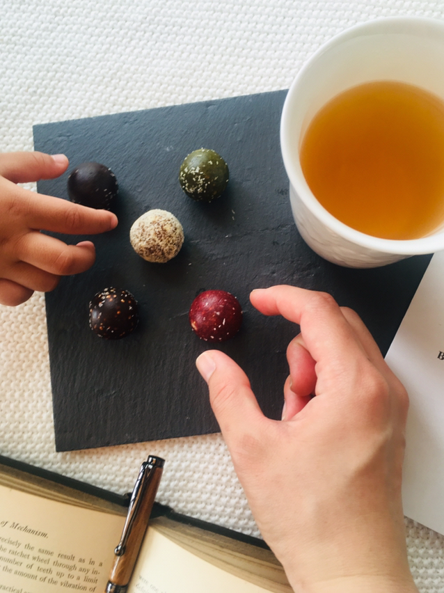 ドライフルーツやナッツなどの自然素材を原料に作られるボール状の菓子で、