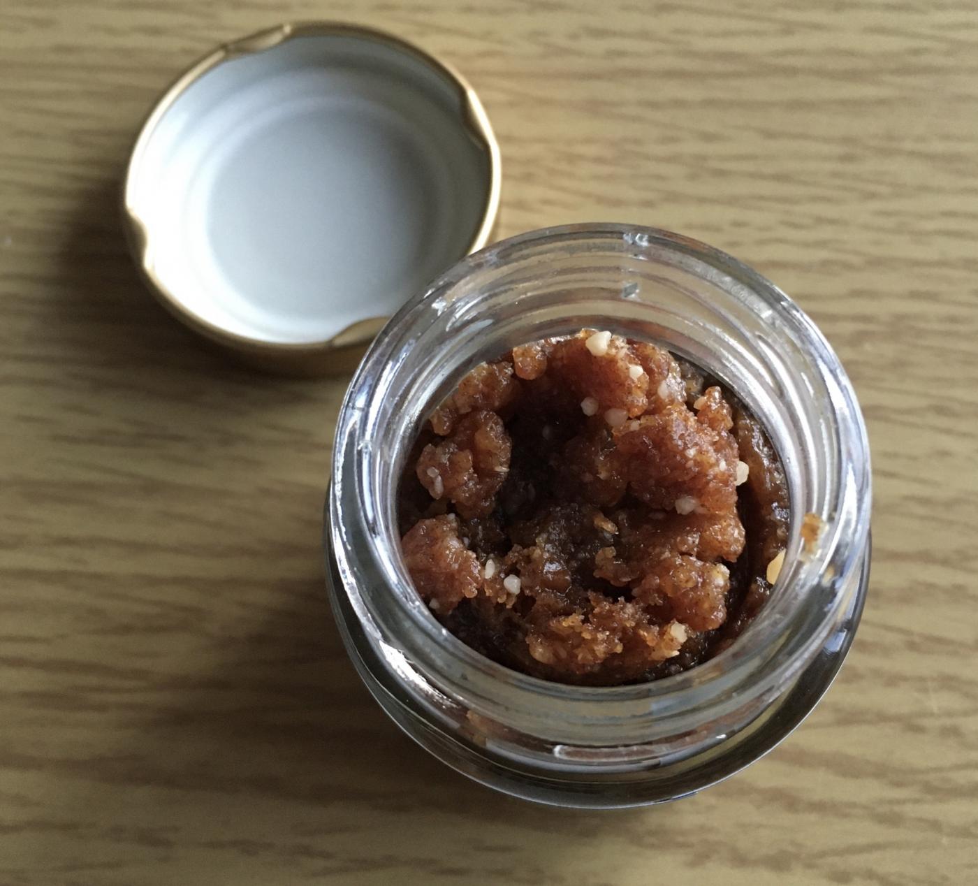 中身は想像してたよりも固形感が強くて、ジャムみたいにパンに塗る事はできませんでした。
