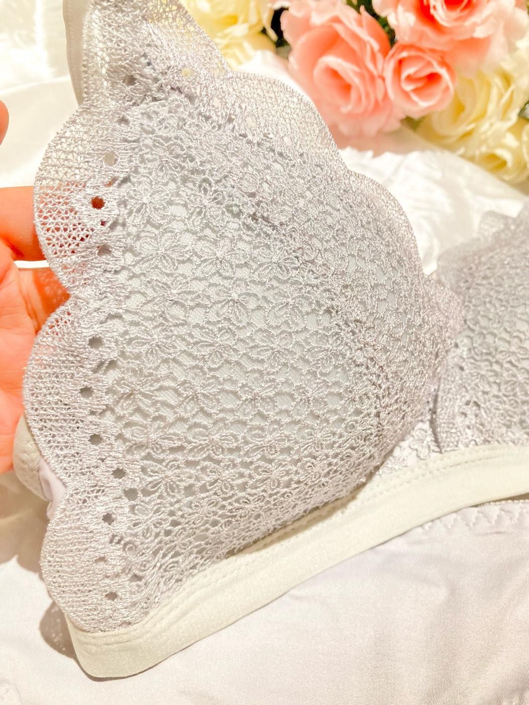 しんなりした生地は肌あたりも優しく心地良いです。ブラジャーのお胸部分は小花柄レース編みの様になっていて、光の当たり具合によって光沢が出て可愛いです。