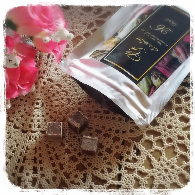 小さな四角いチョコレートですが溶けにくくて手が汚れないのとビターな味がたまらなく美味しいです(*´-`)もともと甘すぎるチョコがあまり好きじゃないので丁度よい甘さ♪