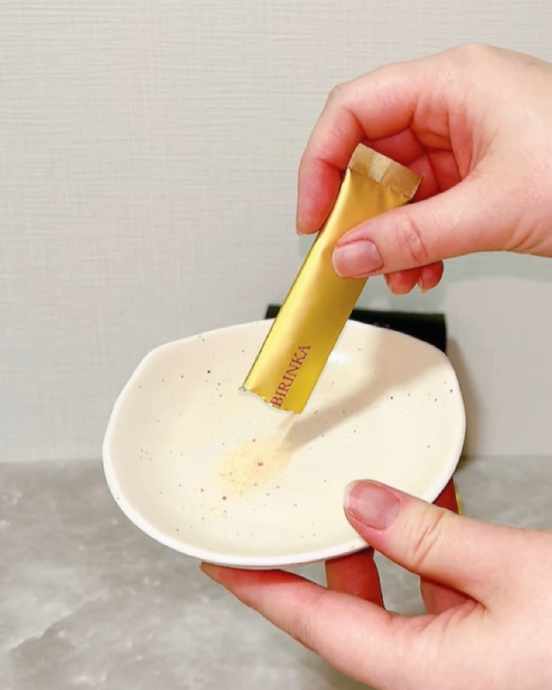 パウダーをお皿に出してみたら、赤い粒々が…