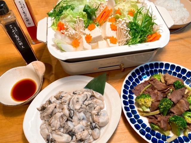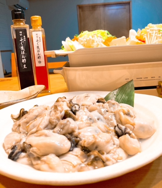 滋味生ポン酢で牡蠣鍋を、琥珀生ポン酢で〆の雑炊をいただきました。