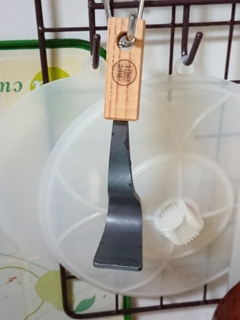 錆びないように取り扱わないといけませんが、柄の部分に穴が空いているので引っ掛けておくことも可能です。