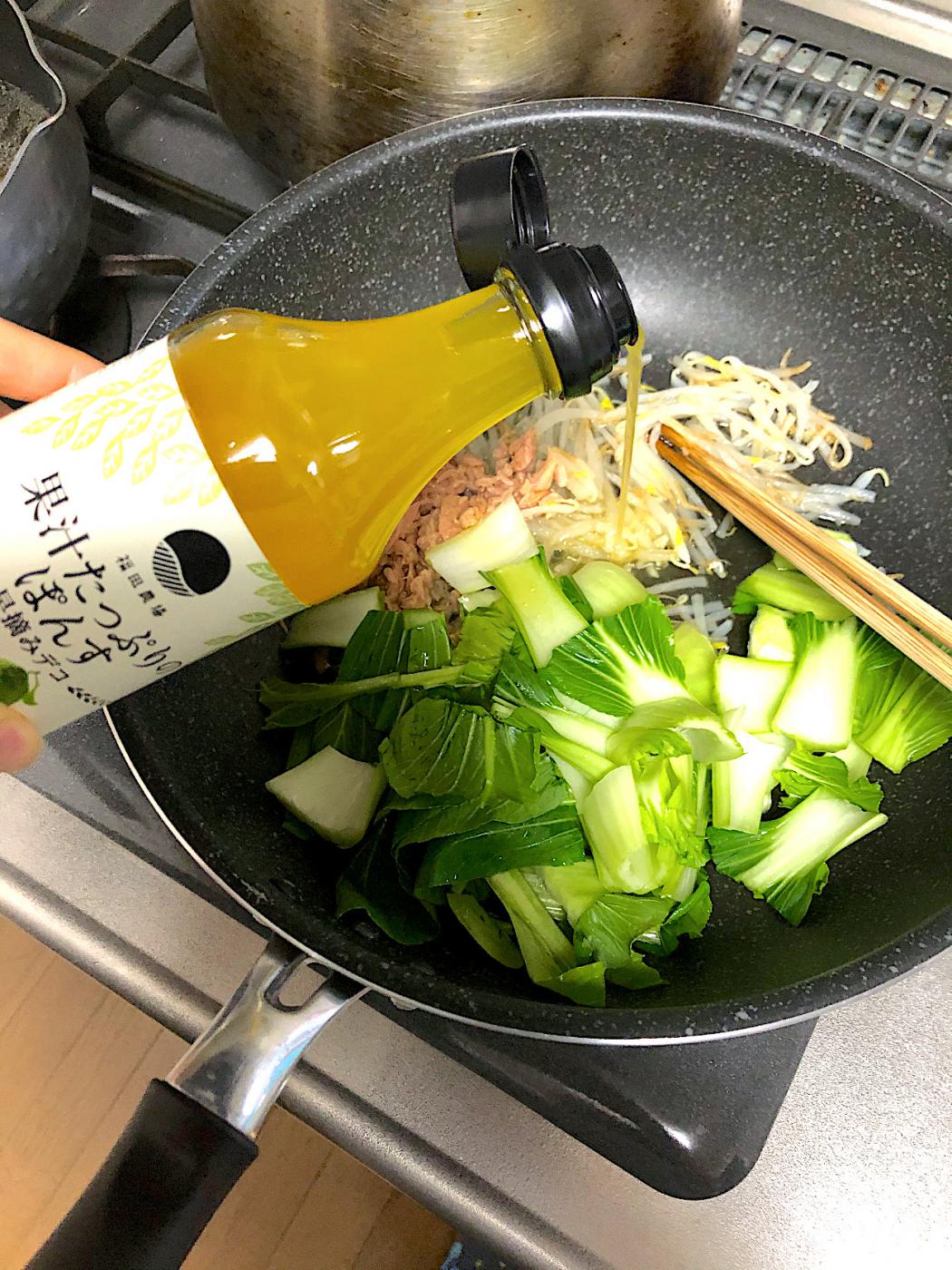 果汁たっぷりの無添加ポン酢がとても美味しかったので、料理でも使いたいと思ってポン酢炒めを作ってみました?