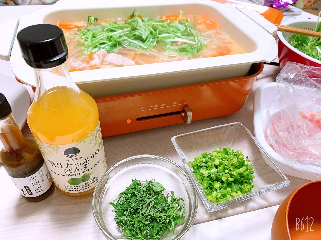昨日は水菜と豚肉のハリハリ鍋にしたので、ポン酢に果汁たっぷりのぽんすを混ぜてみました。