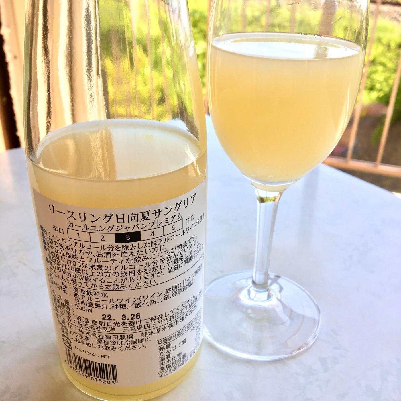 サングリアの話に戻りますが、白ワイン(ドイツ産)からアルコールを抜いて、そこに日向夏果汁(九州産)をブレンドして作られた脱アルコールワイン。