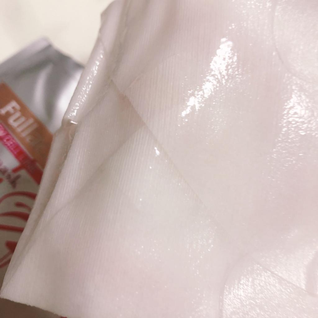 1枚ずつの個包装で22mlの美容液ヒタヒタです。シートは大きめ厚みがあり切れ込みの多さに驚きつつも密着...
