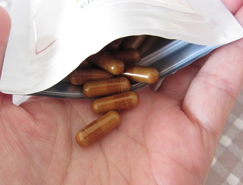 手に出してみると、茶色い小さ目のカプセルタイプで、特に、においや味もなく、小粒でつるっと飲み込めるので、飲みやすいです。