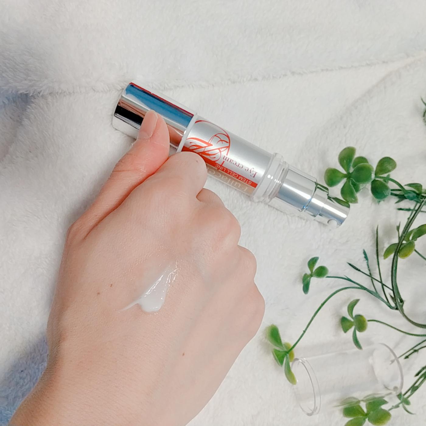 クリーム白色で少ししっかりめのテクスチャー。目元にクリームを塗ると溶けるように伸びます保湿効果が抜群でこのクリームを塗ると朝起きても目肌がしっかり潤いハリがでます!私は使い始めて5日目頃から明らかにシワが薄くなったのを感じました??