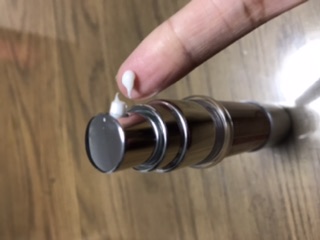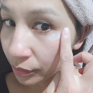 あずき粒くらいの量を出して指で目もとの皮膚に優しく馴染ませるようにして塗布していきます(^^)