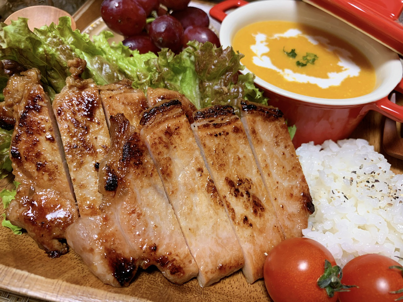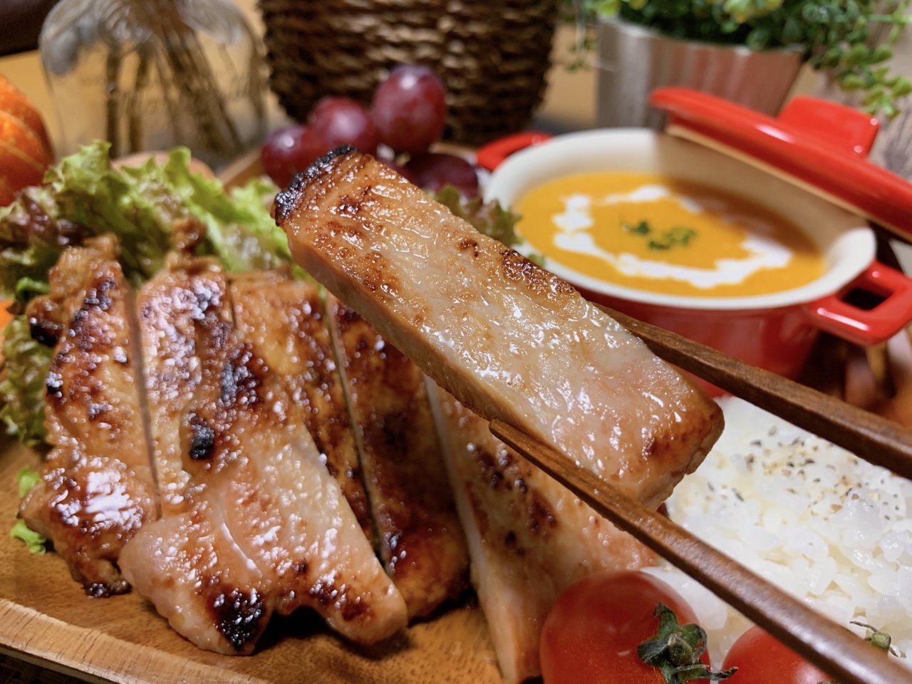 焼いている時から香ばしい豚の脂の香りに期待が高まります!