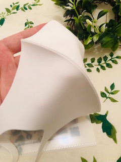 お顔に自然とピタッとくっつくマスクで、肌に当たっても優しい感じです。