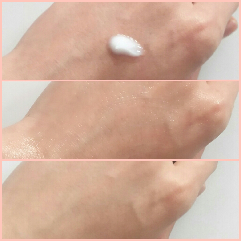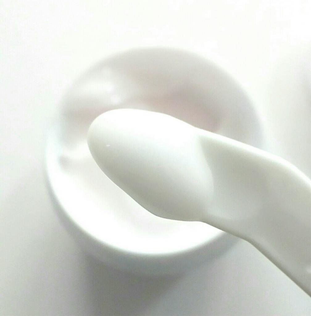 ほんのりピンク色のクリームで、スパチュラがついています。指で直接触れなくて済むのは衛生的でいいですね♪とろんとした柔らかいクリームで、伸びも浸透もいい感じ!(*´ω`*)