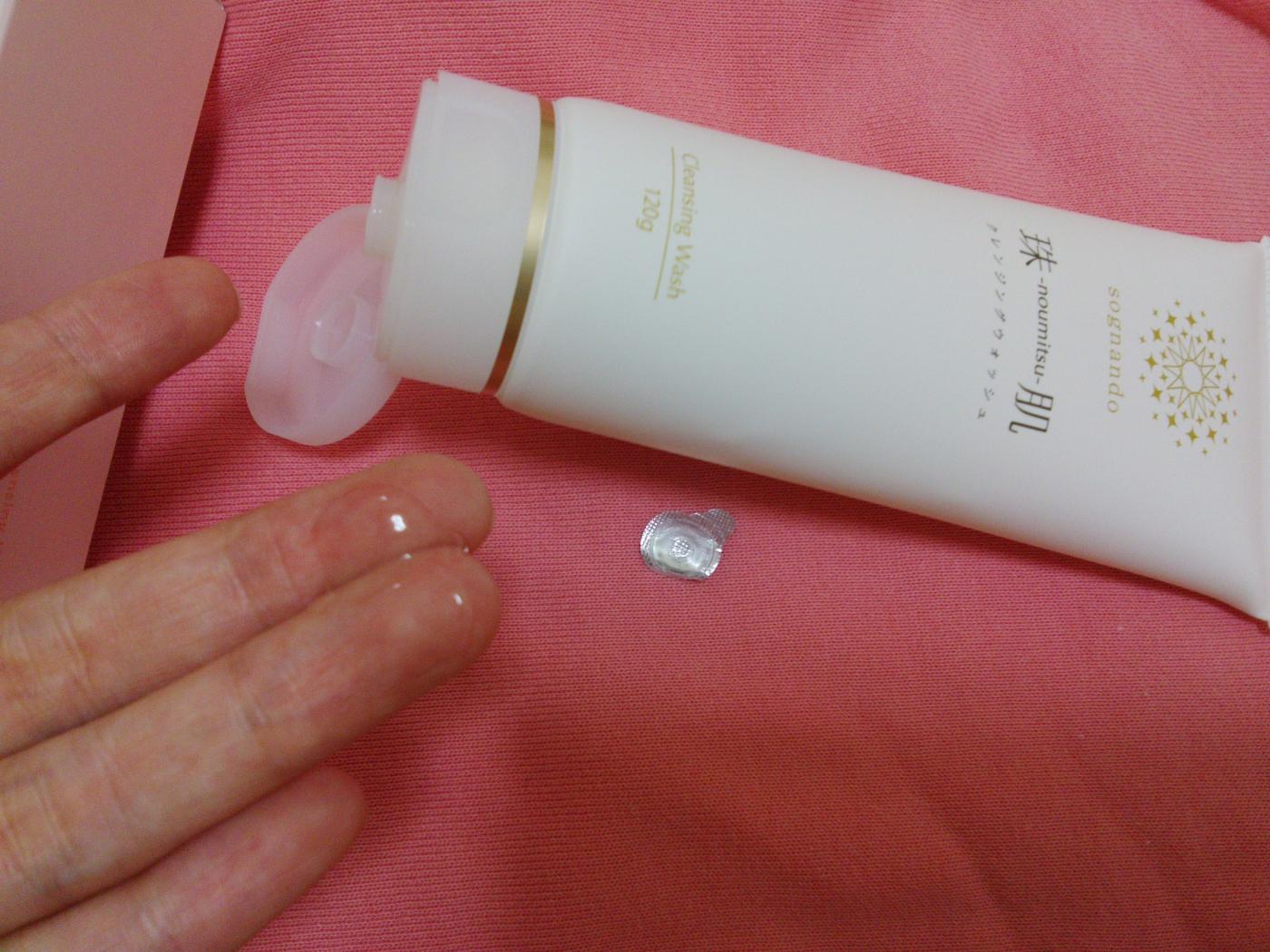ジェルのような感じのテクスチャで、ぬるま湯を加えると洗顔してるような泡に変わっていきます。洗い流すと肌がすべすべで、しっとりしています。