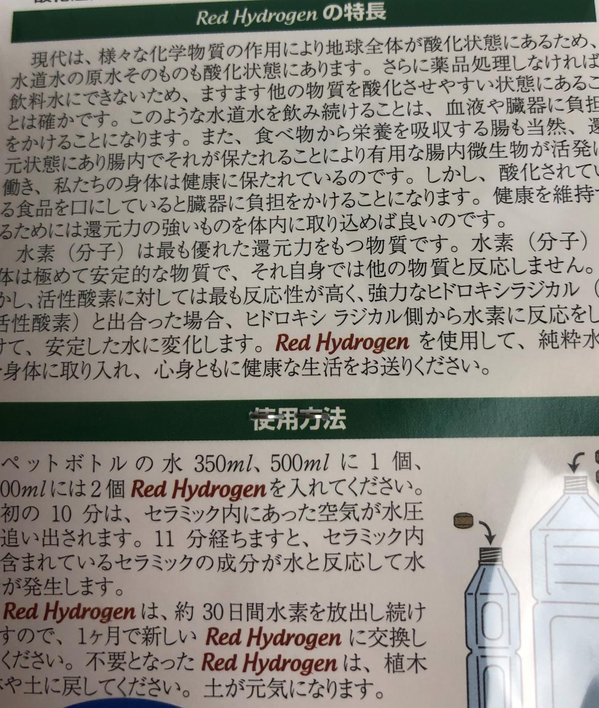 水素水の素「レッドハイドロゲン」・・・・いつものお水にセラミックを入れるだけで簡単に水素水をつくることができるちゅもの。それも、約30日間水素を発生し続けるので経済的。350mL、500mLには1粒ポン。