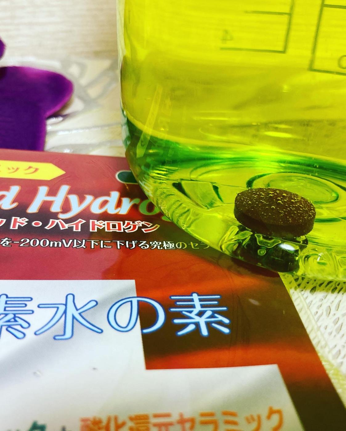 この不思議な茶色いタブレットは、水素水の素だそうです。