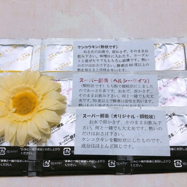 今回届いたのは‥ 粉末タイプの『ケンコウキン』、ケンコウキンを顆粒タイプにした『スーパー酵素オリジ...