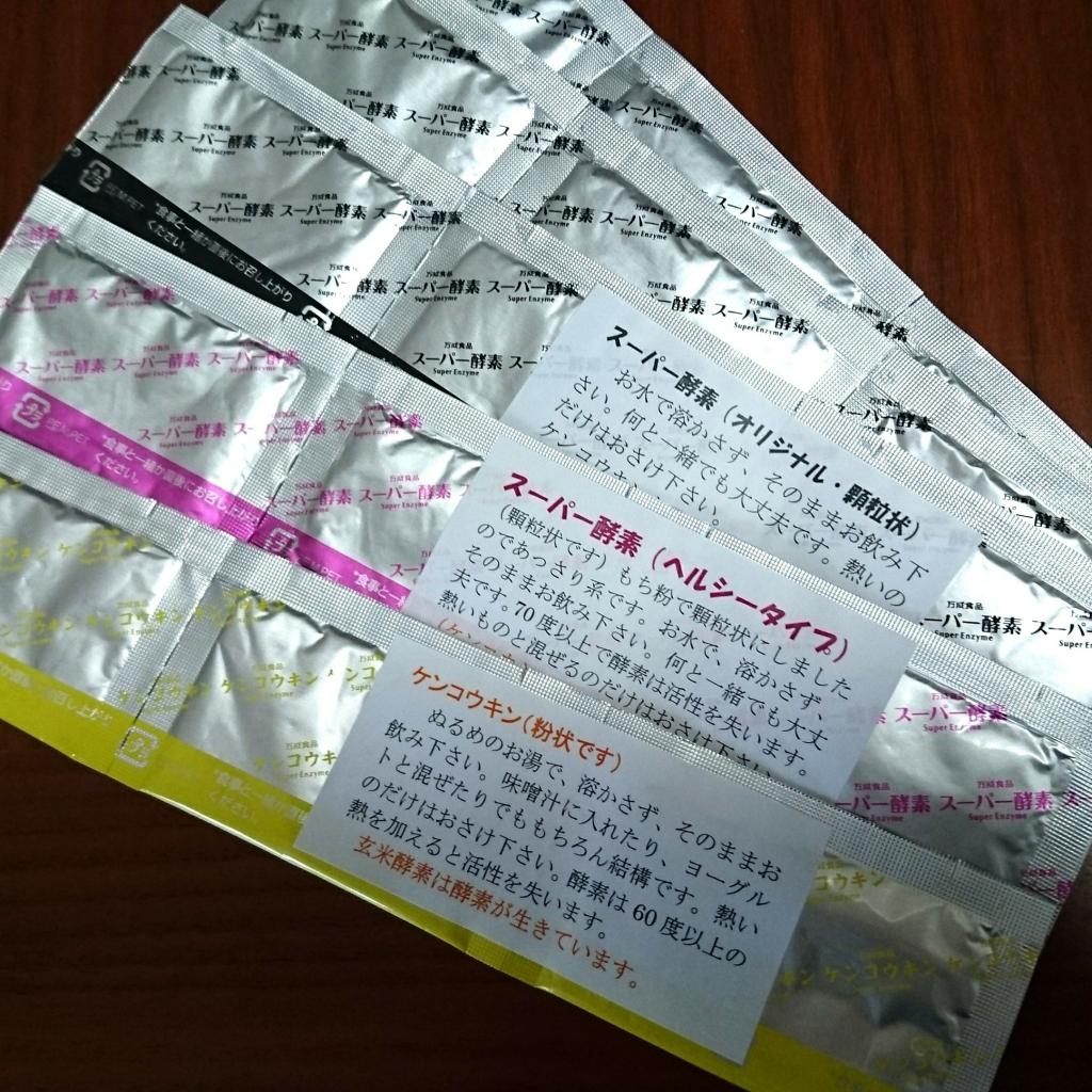 スーパー酵素オリジナルとヘルシータイプは一見すると漢方薬のような顆粒状でザクザクとした食感。ケンコウキンは粉状で、甘くないきな粉みたいな味でした。