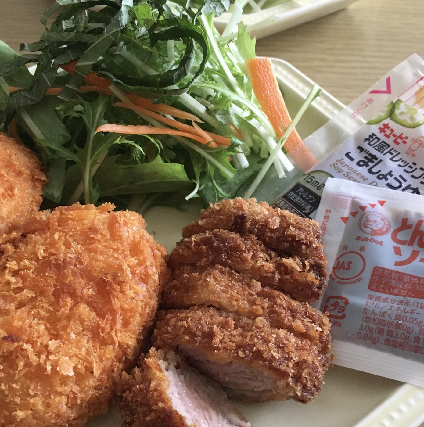 これはヒレカツとカニクリームコロッケが冷凍になったセットで、タルタルソースやとんかつソース、ドレッシングも全てセットになってるんです。