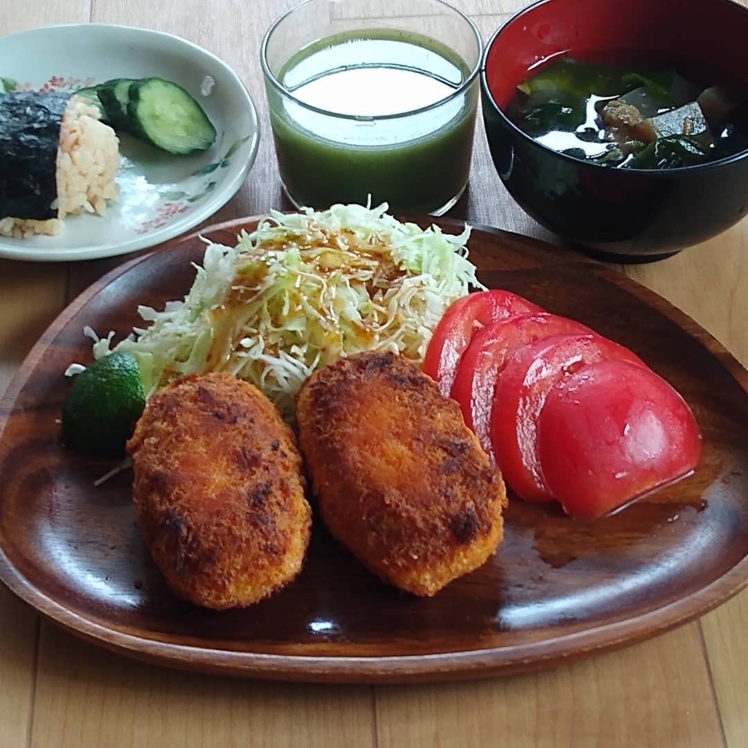 こちらのキャベツにはごま醤油ドレッシングをかけました。まったりしたカニクリームコロッケなのでさっぱりめのごま醤油が合います。