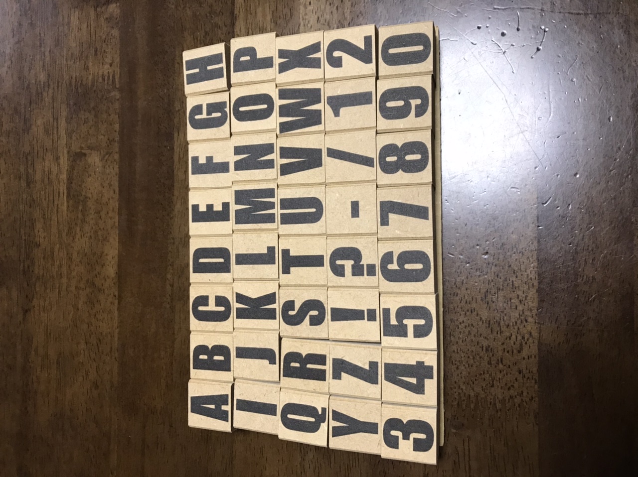 ローマ字や数字などがあるので、色々なところにスタンプを押していきたいなと思います。