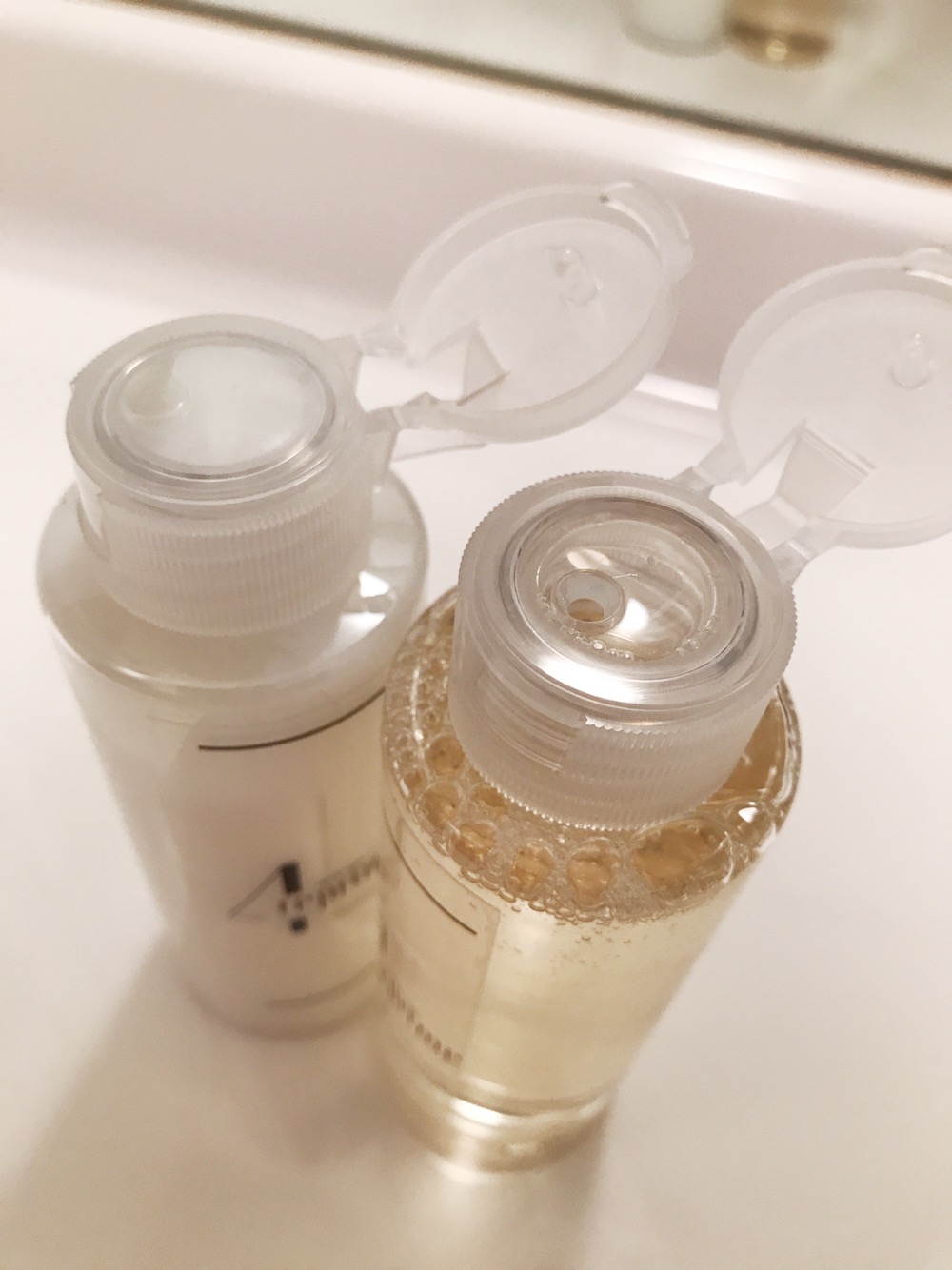 シャンプーとトリートメント、それぞれ色が違うため、使用しやすいのも良かったです。透明 とパールです。