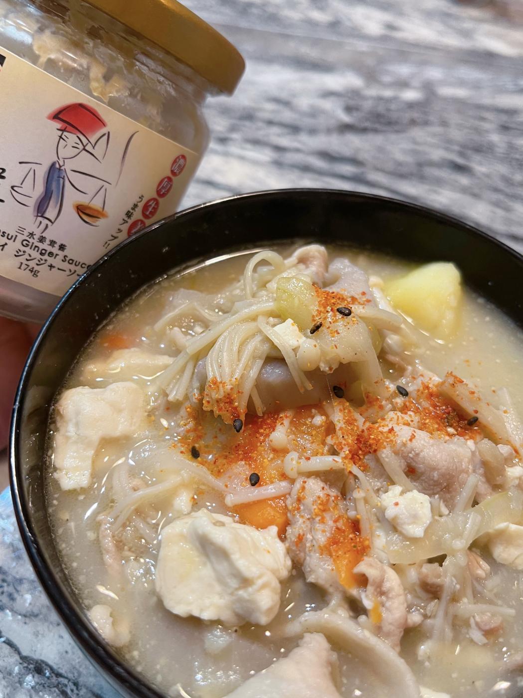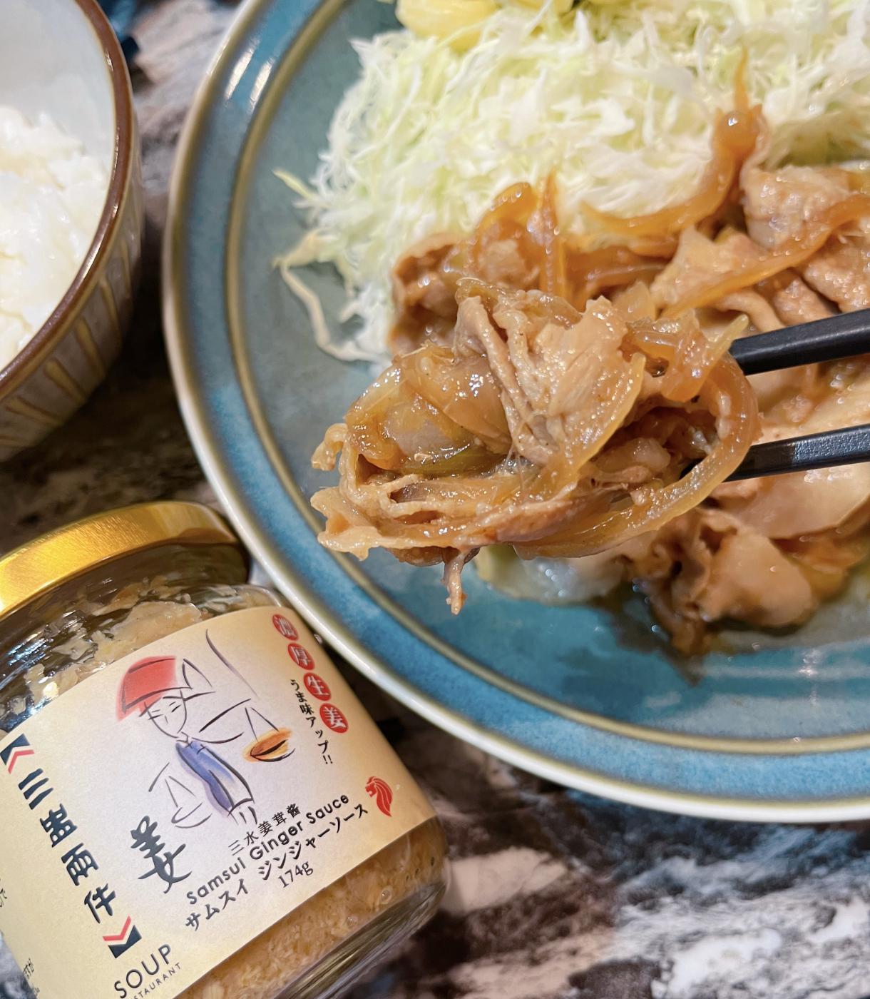 生姜、胡麻油、ニンニクなどを使用した万能調味料のサムスイジンジャーソース。