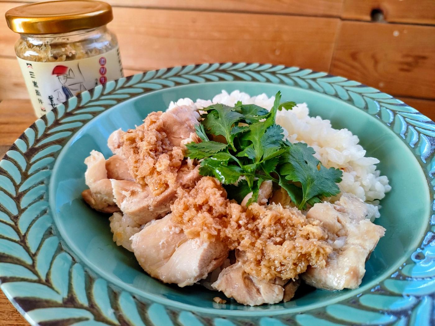 シンプルな蒸し鶏が、複雑で手の込んだ料理に格上げ。野菜炒めは炒める時にも使い、盛り付けた後にも追いサムスイ。