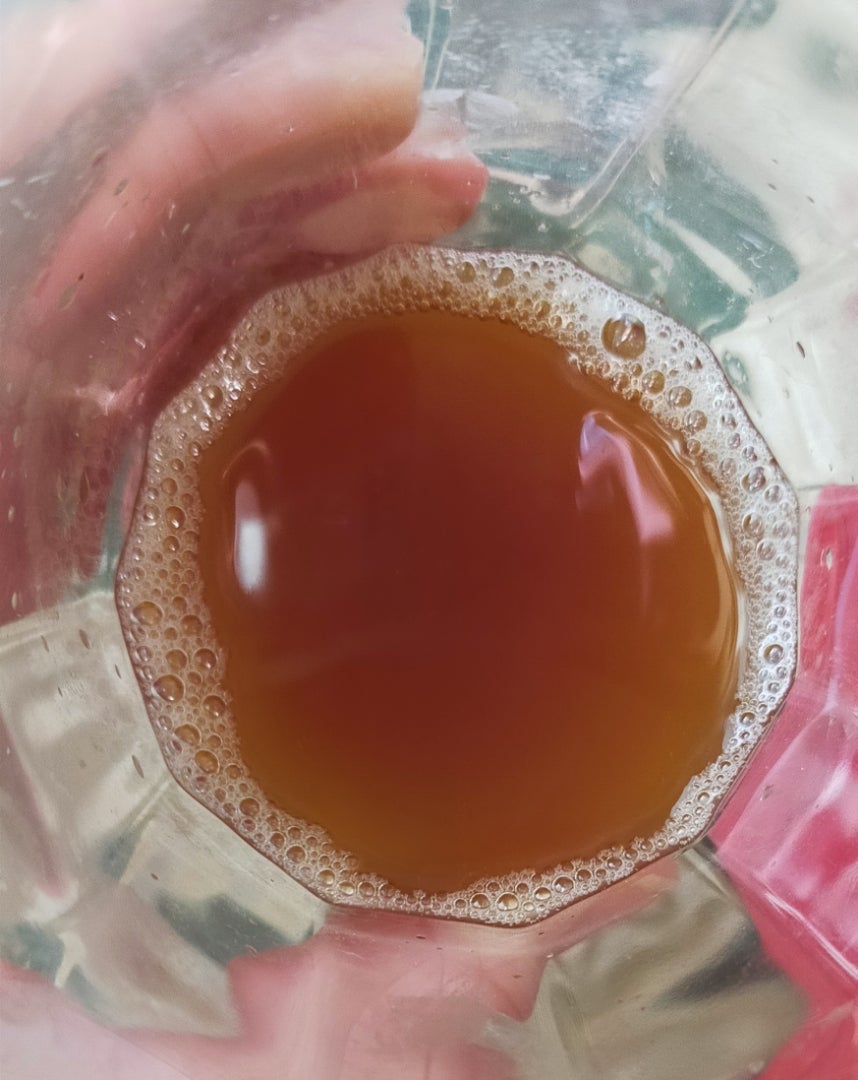 サポニン(ジンセノサイド)がパウチの底部に沈殿するそうなので、よく振ってからグラスに入れてみたんだけど、香りは特に感じませんでした。