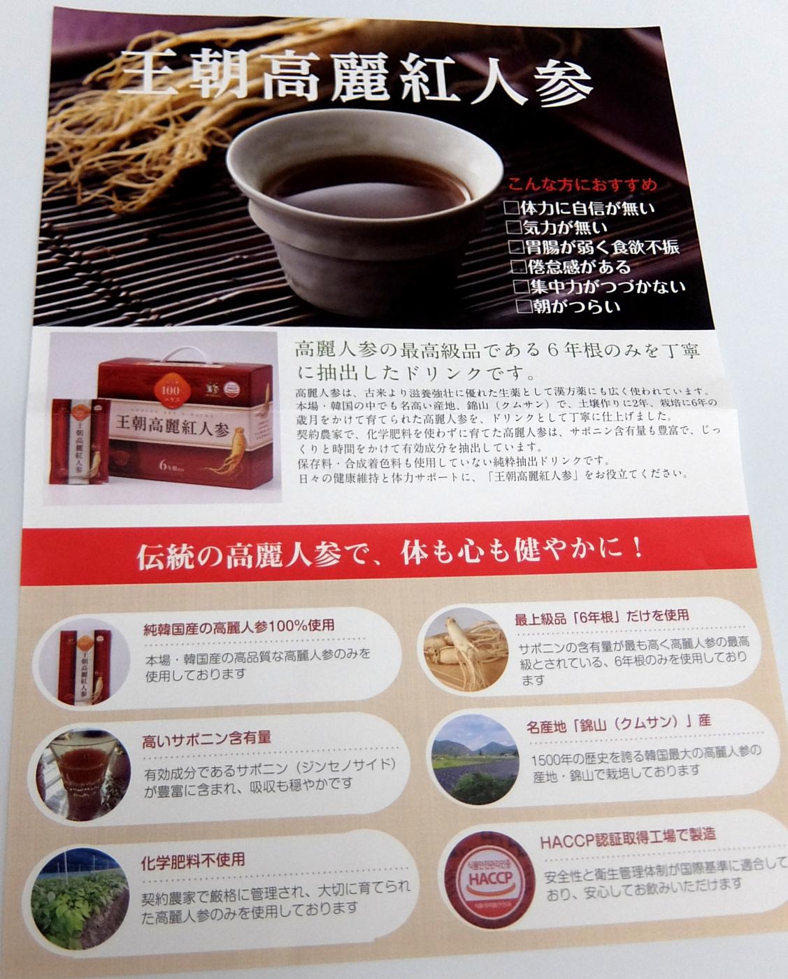 王朝高麗紅人参(オウチョウコウライアカニンジン)