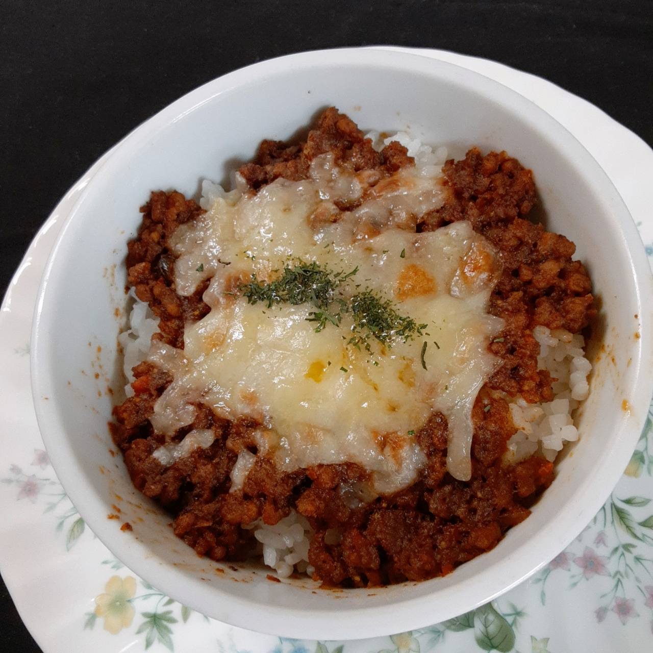 カレーをごはんにのせてチーズをトッピングしてからオーブンで焼くだけで、簡単に薬膳キーマカレードリアが完成😊🧀