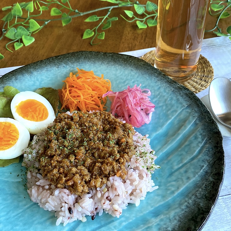 クコの実、陳皮、竜眼肉、ハスの実など25種類以上のスパイスや生薬が配合されたオリジナルカレー🍛
