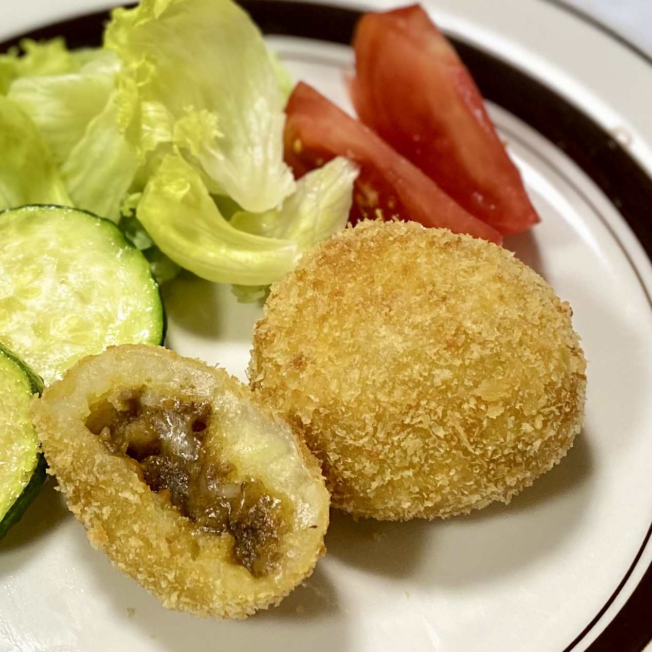 残りの半分はカレーとチーズを中に包んでコロッケにアレンジして家族で食べました♪