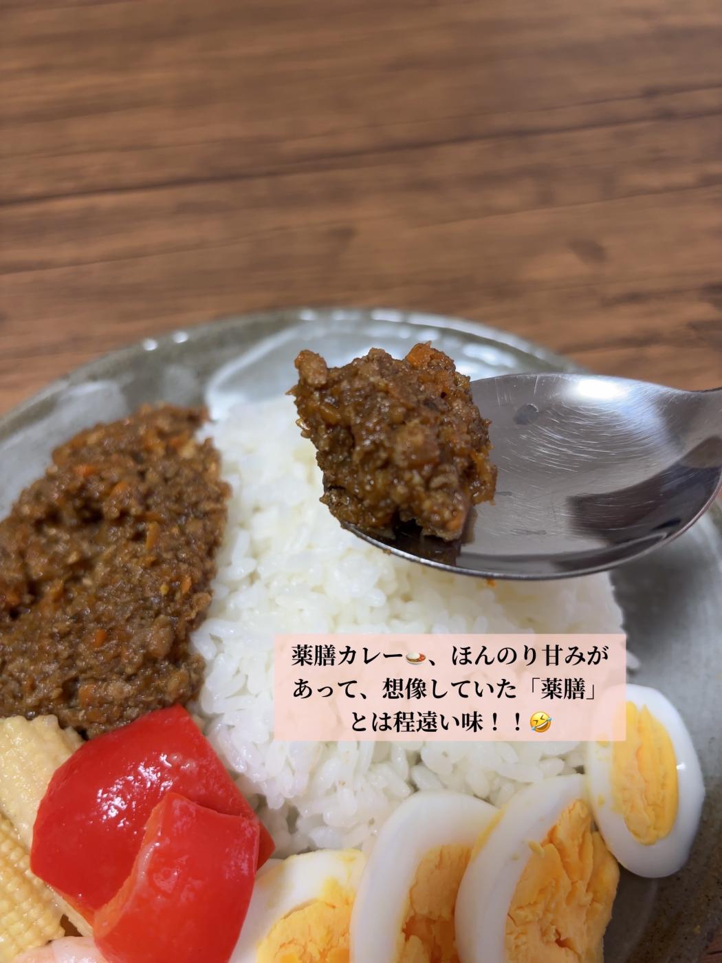 クコの実、陳皮、竜眼肉、ハスの実など25種類以上のスパイスと生薬を使ったオリジナルの薬膳キーマカレーで、辛いのが苦手な次女も美味しく食べられました🙆♀️