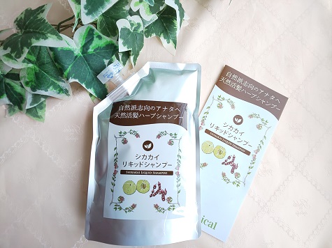 シカカイリキッドシャンプー適量を頭皮と髪になじませます。