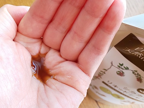 手に取ってみると、茶色のサラッとしたみずみずしいシャンプーです。