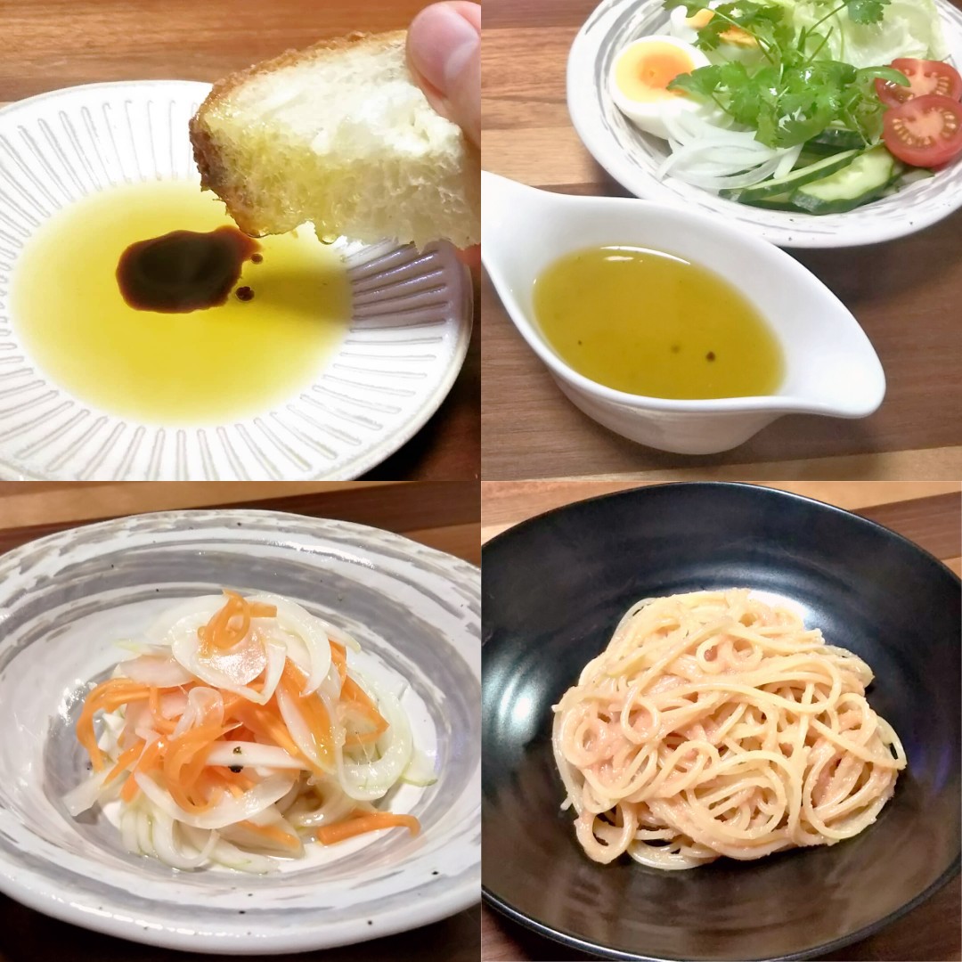 すごくたくさん使う家庭ならパンにつける用・ドレッシング用・加熱用・漬け込む用など種類を揃えるのもいいですが、1本買って色々使いたい人には本当にオススメじゃないでしょうか。