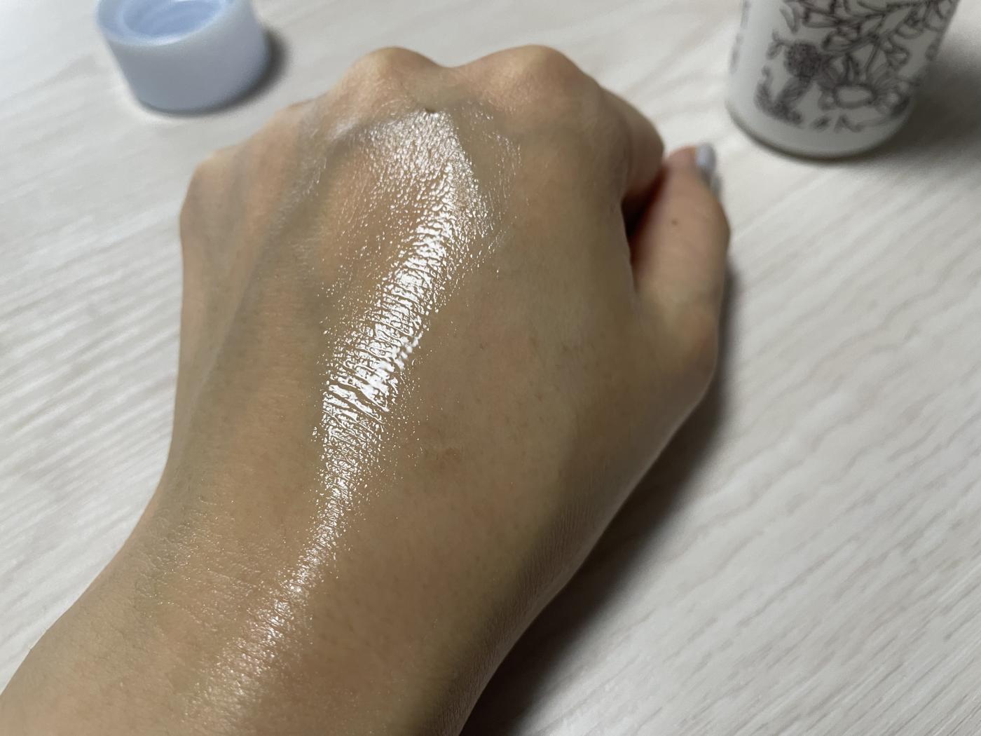 乳液を出してみると、白濁としたトロッとしたテスクチャーでした。乳液とジェルの間の様な感じです。