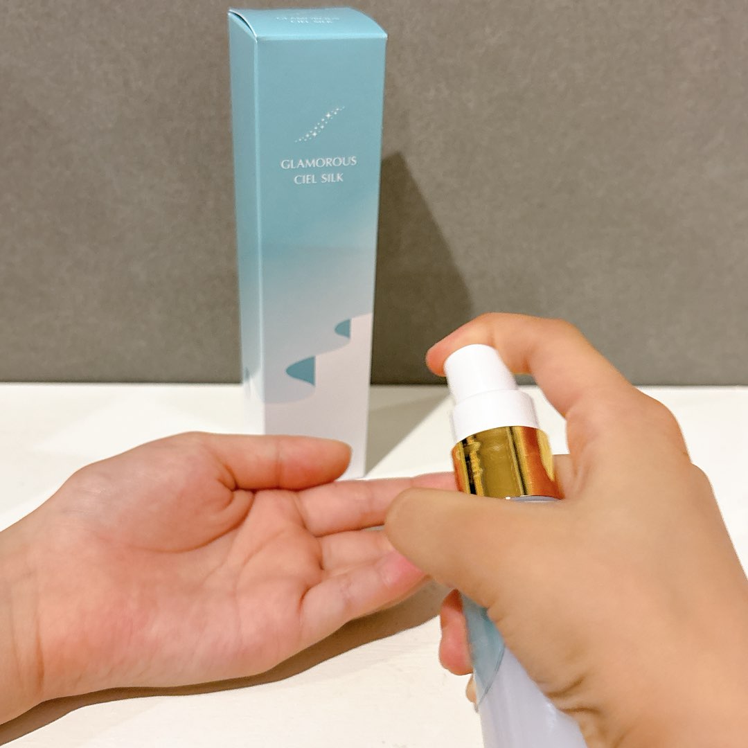 今回はスプレータイプのエイジングケア化粧水Glamorous Ciel Silkを使ってみたよ😌 手のひらに1〜2プッ...
