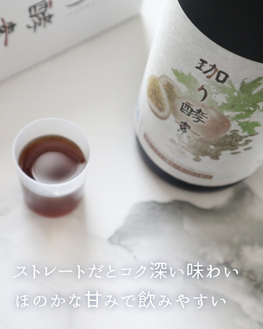 ストレートでそのままひと口飲むと深みのある味わいで、ほんのり酸味がアクセントになっています。