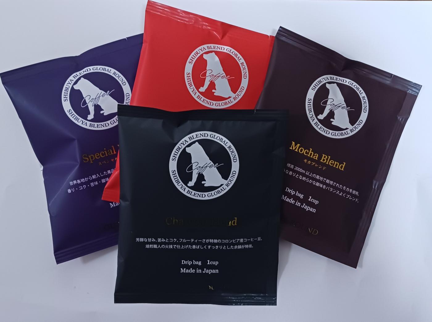 セットには、スペシャルブレンド・モカブレンド・マンデリンブレンド・炭焼きブレンドの4種類に加え、ランダムで1パックが入った計5パック。今日はどれにしようかと選ぶ時間も楽しく、ちょっとしたご褒美感があります。渋谷をイメージしたパッケージにはハチ公モチーフの犬のアイコンが使われており、思わず手に取りたくなる可愛らしさ。犬と暮らしている身としては、このパッケージデザインだけでも気分が上がりました。