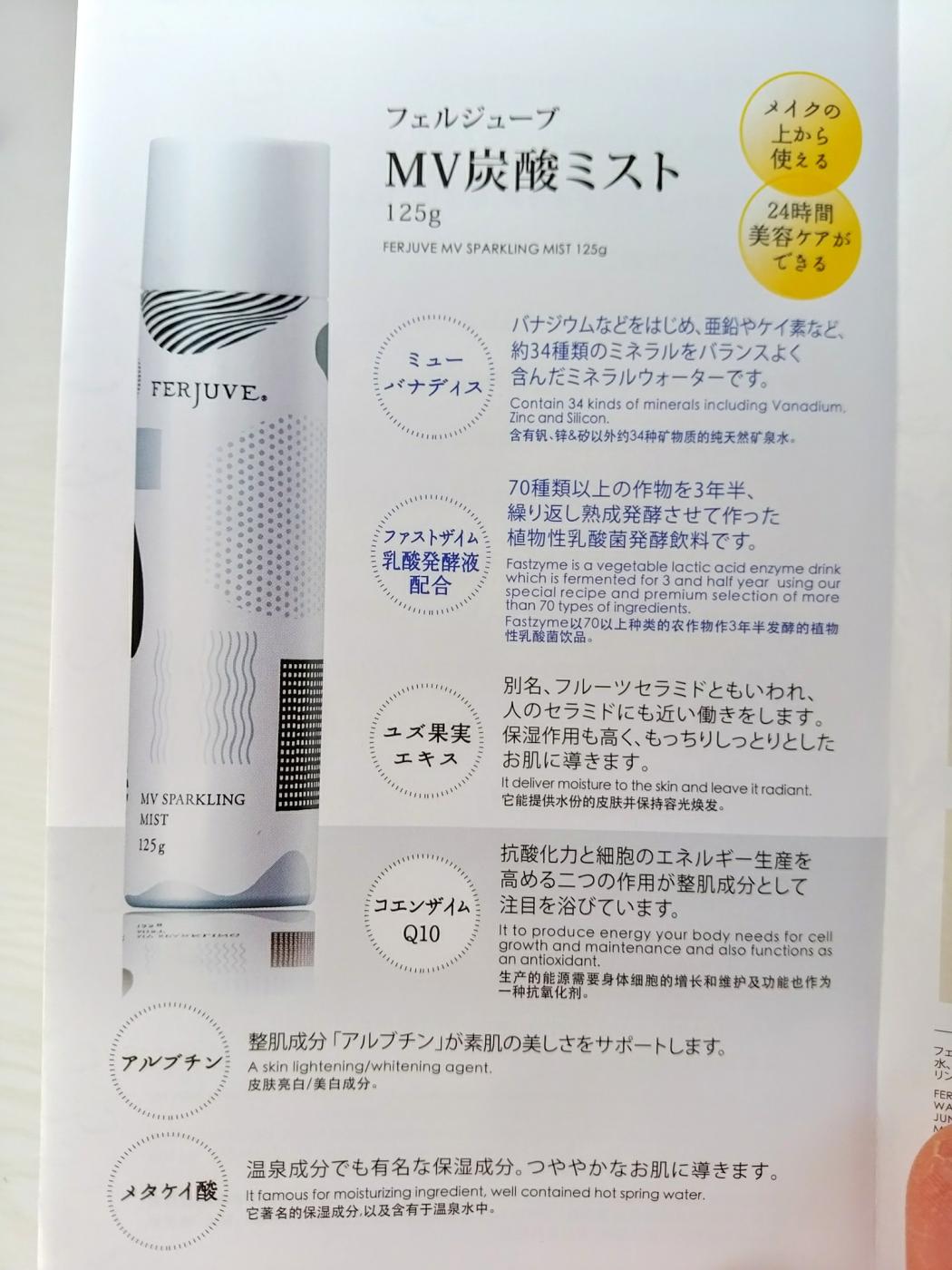 「フェルジューブMV炭酸ミスト」を使用させていただきました♪ 水の分子を特殊製法で低分子化し、1600...