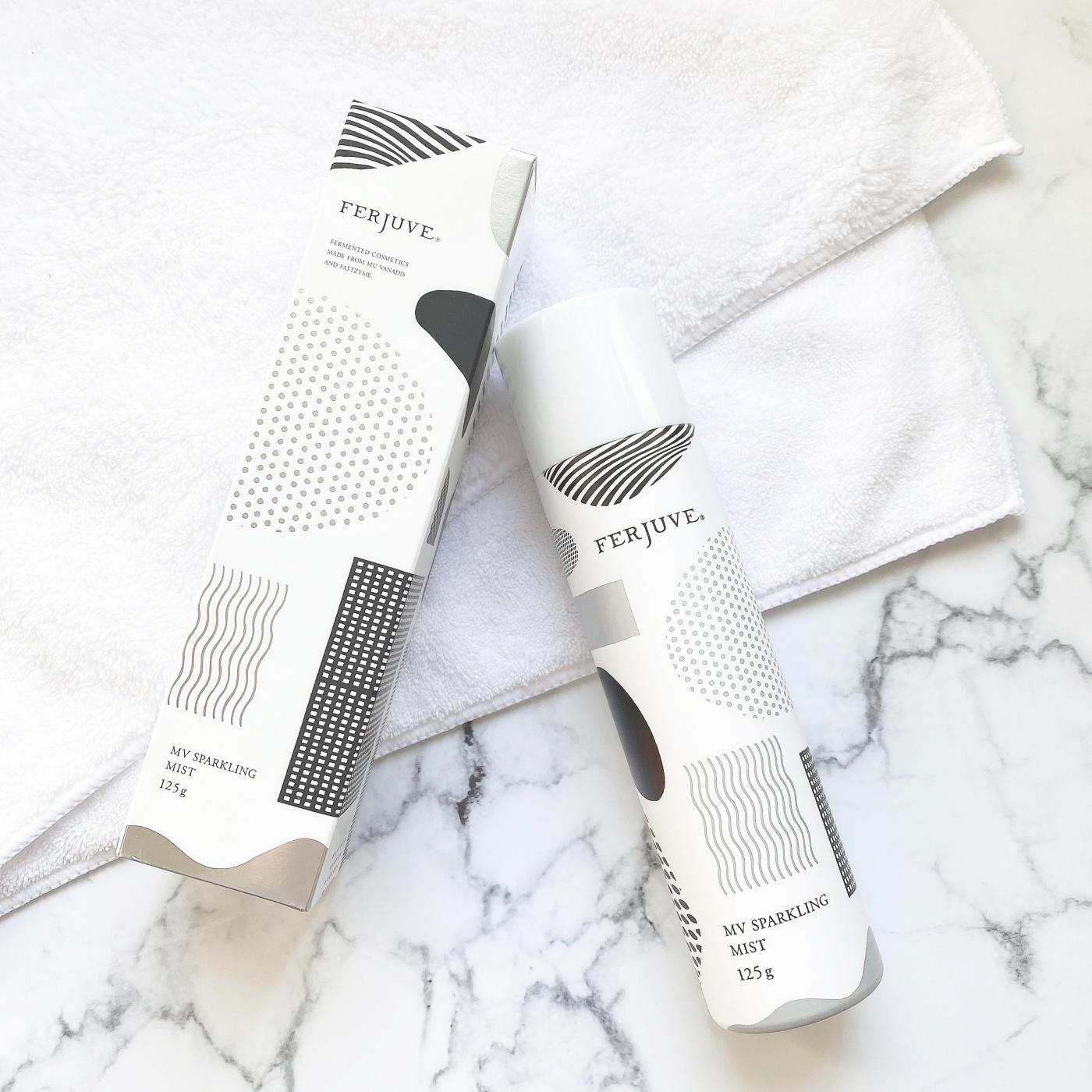 『フェルジューブMV炭酸ミスト』は亜鉛やケイ素など約34種類のミネラルをバランスよく含む富士山の地下深層水と、70種類以上の原材料を3年半熟成発酵させて作った植物性乳酸菌発酵エキスをベースに、発酵と若返りをコンセプトにした”発酵化粧水”です。