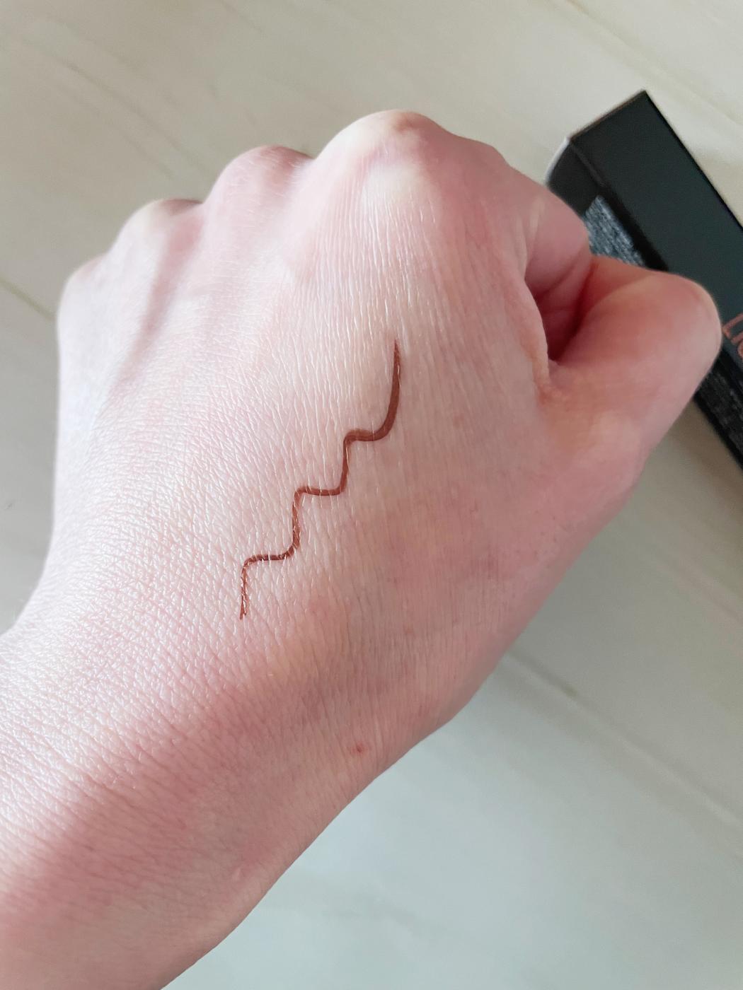 すごく描きやすいアイライナーです。私が使ったのはブラウン。髪色が明るいのと、もともと目元がハッキリしているので、ブラックだとやりすぎ感が出てしまうのです。ブラウンは程よい抜け感が出るし、肌との馴染みも良いから愛用中です。リキッドアイライナーってにじみやすいですよね。せっかくきれいに描いても、ジワジワとにじんでくるのが悩みでしたが、このアイライナーは濡れても擦ってもまったくにじみません。太いラインも極細ラインも自由自在に描きやすい。私は全体的に太めに引いて、目尻はやや跳ね上げるのが好きなのですが、その跳ね上げ具合も狙った通りに描けます。描いていても筆先が軽やかで、力を入れなくてもスルスルと動く感じですね目元に嬉しい、潤い成分も配合されているので、毎日のメイクで大活躍です。しかもお湯で落とせるので、ポイントメイクリムーバーとか使わなくても大丈夫です。お肌に余計な負担をかけなくて済むのが嬉しいですね。バスルームでスルッとオフできちゃいます。さらに、こんなに描きやすくて発色も良いのに1,400円とプチプラなんです。アイライナーって毎日使うから、けっこう消耗するんですけど、このお値段ならリピもしやすいですね。素敵なアイテムとの出会いに感謝です。
